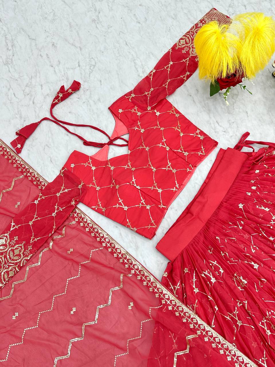 Product Name -Wedding Wear Georgette Red Lehenga Choli