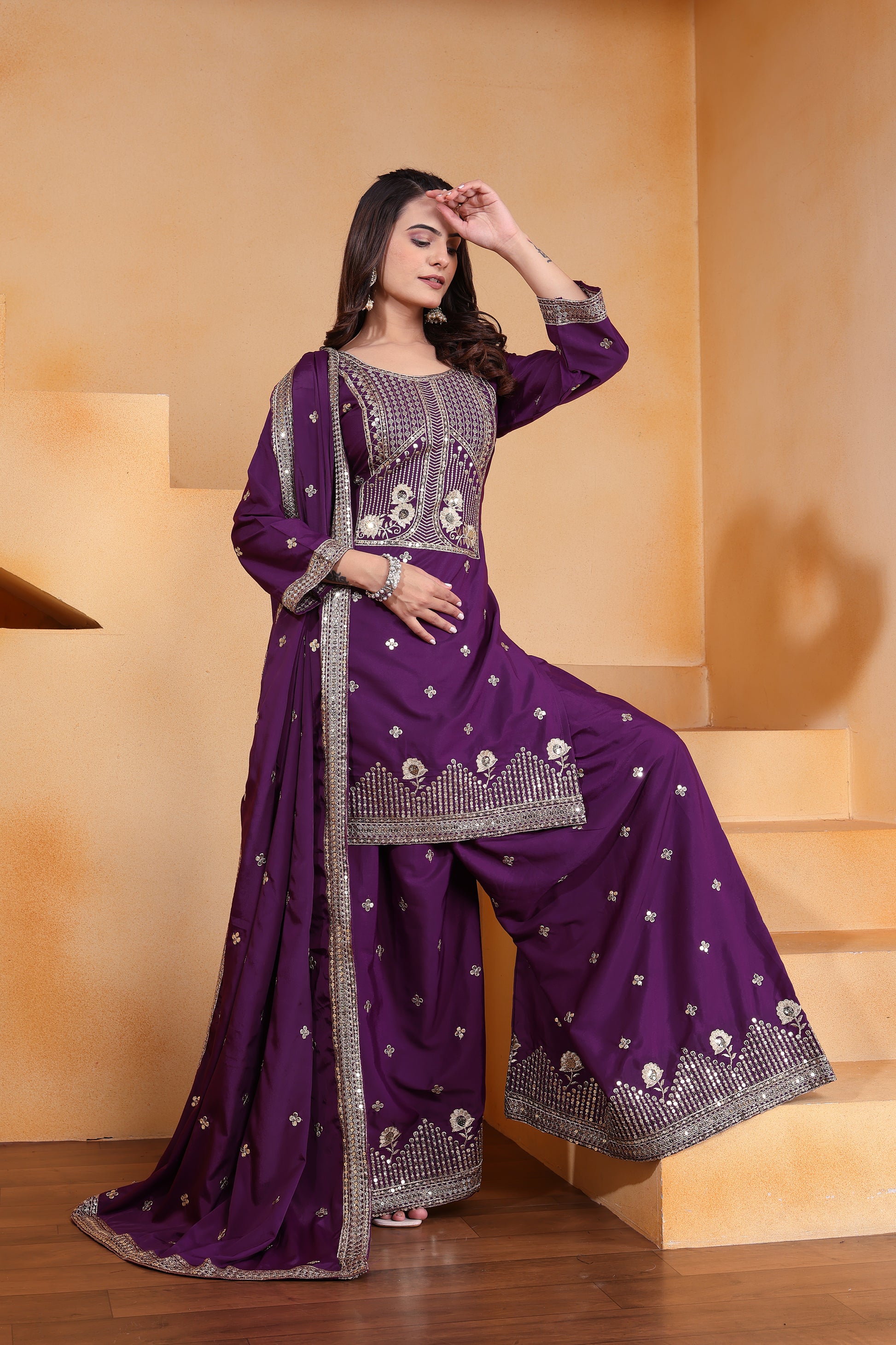 Fabric  : Natural Crep With Sequence Embroidery Work