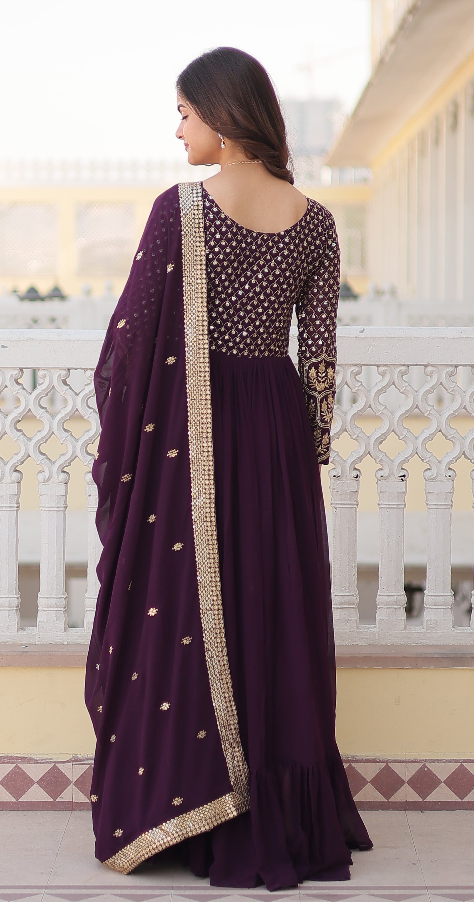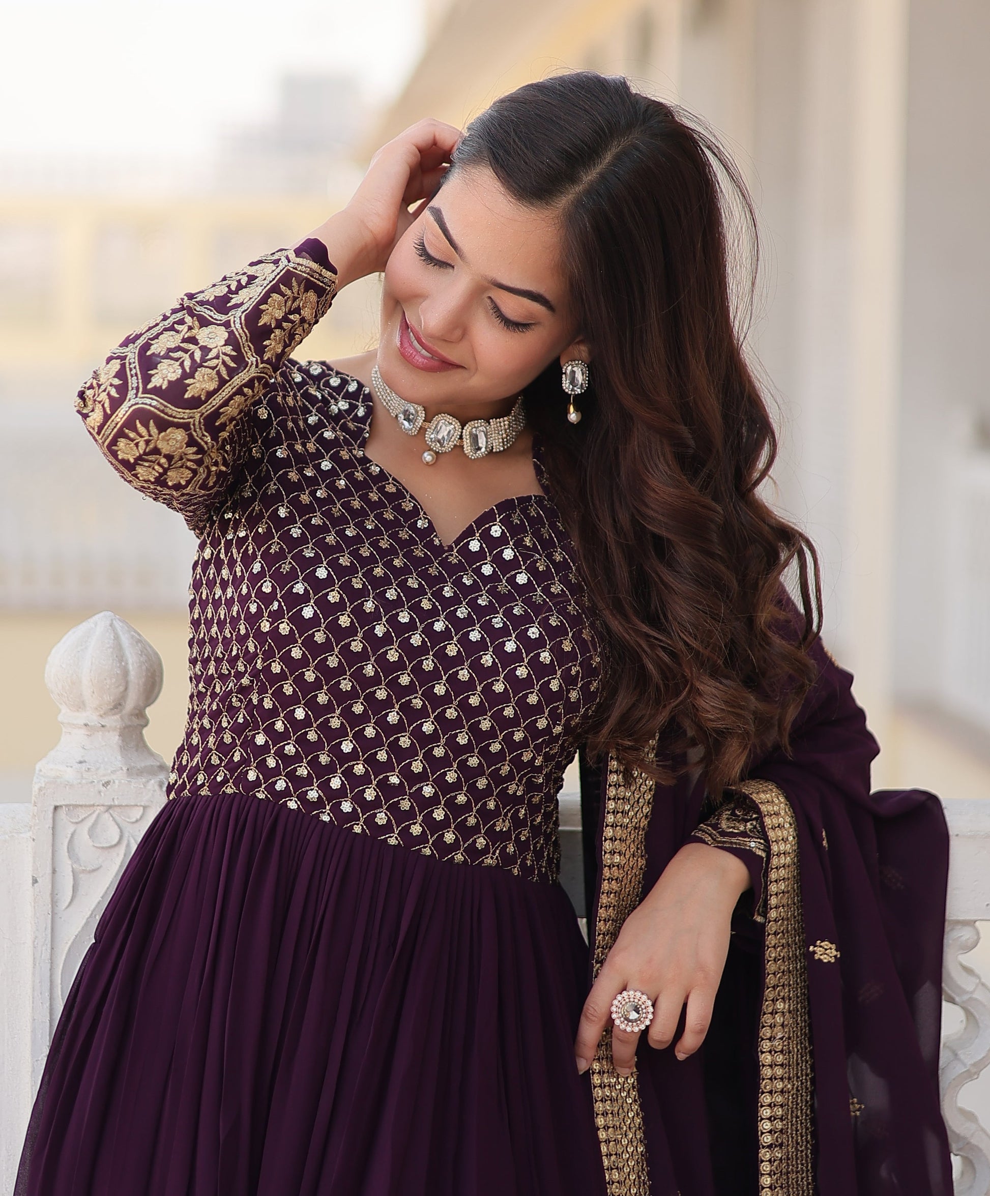 Designer Embroidered Wine Kurta Set