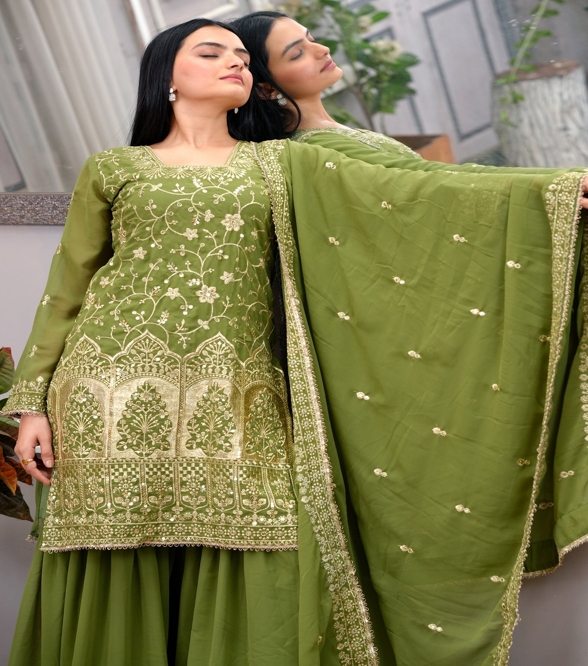 Fabric Ā : Fox Georgette With Heavy Embroidery Work