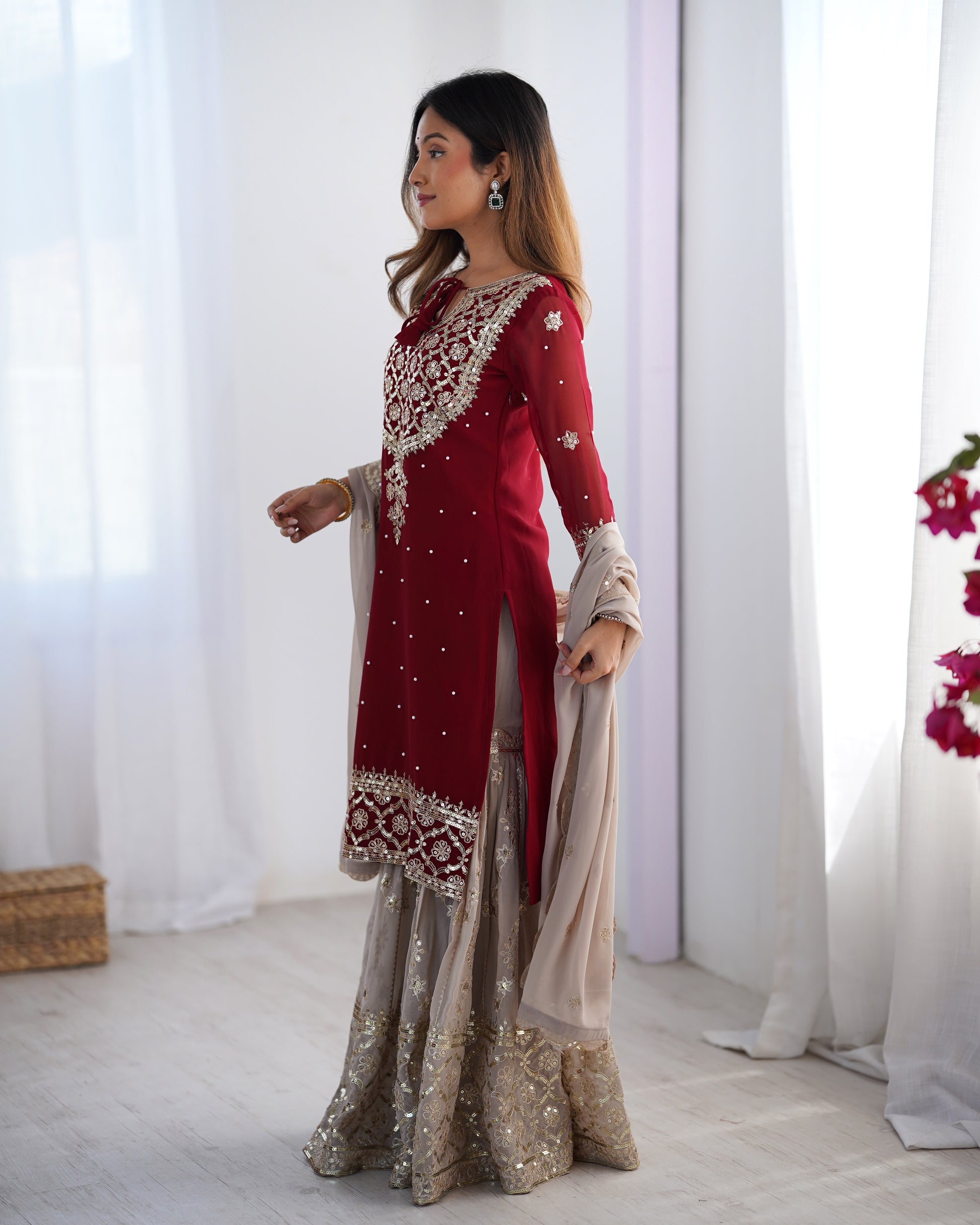 *Top Fabric* ย :Heavy Faux Georgette With 5mm Embroidery Sequence Work With Full Sleeve