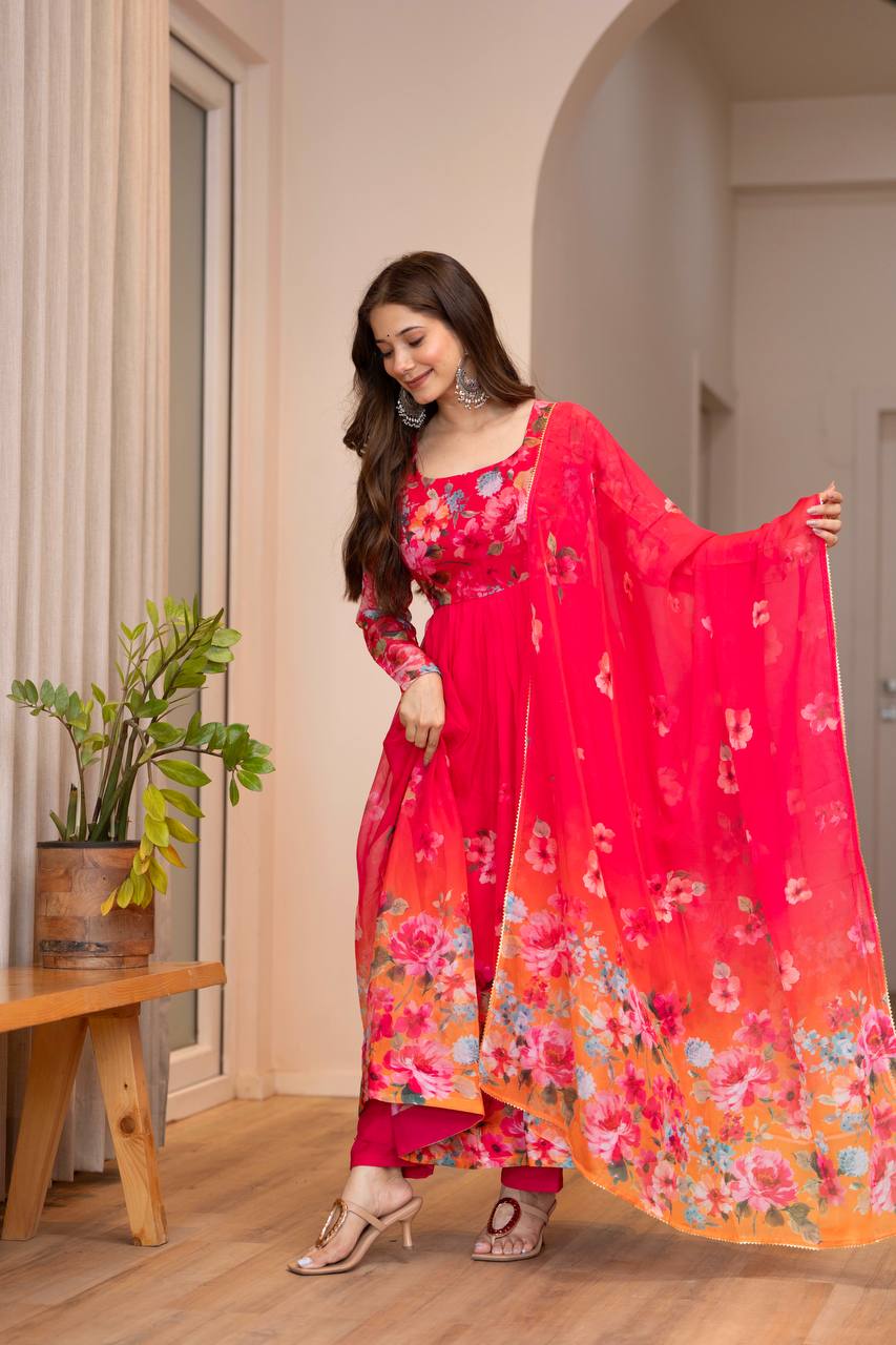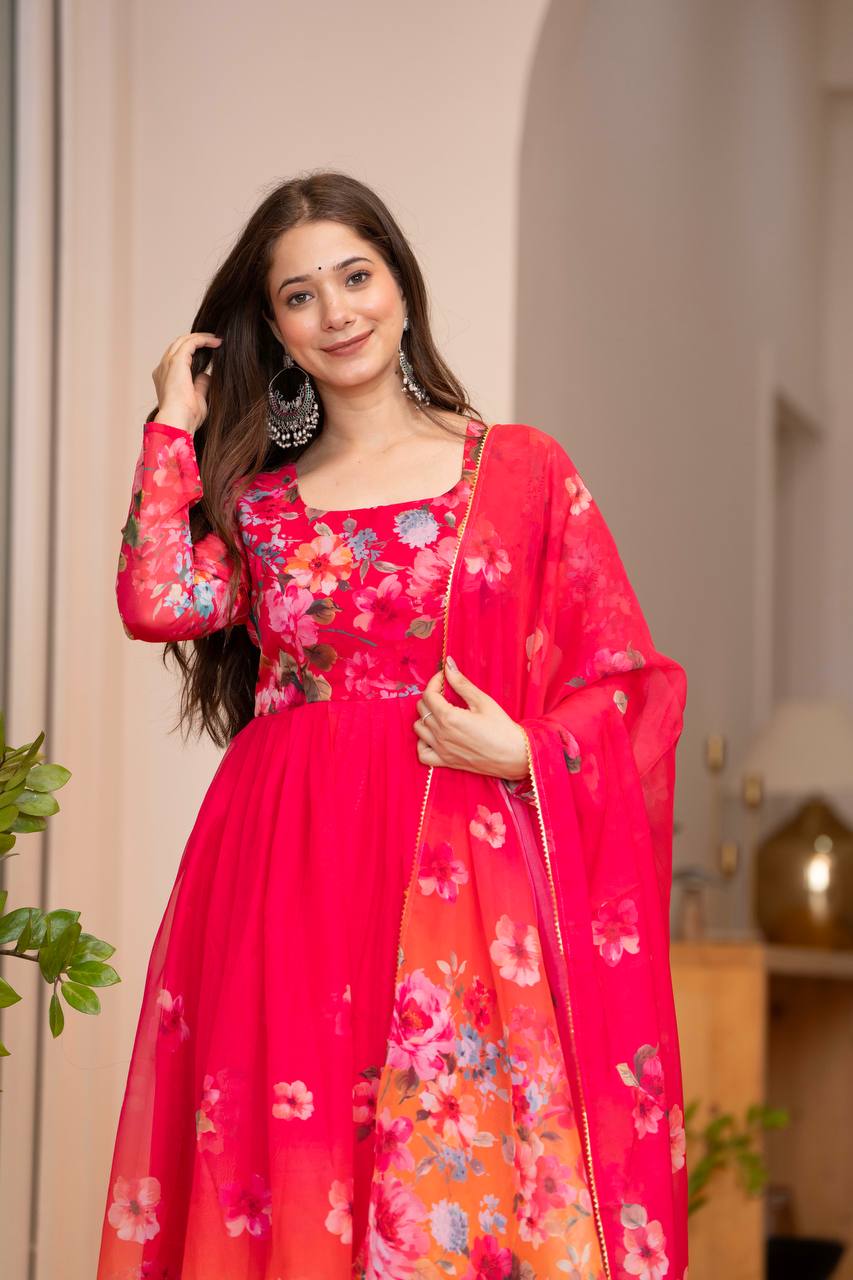 *ANARKALI FABRIC*:PURE SOFT LIGHTWEIGHT ORGANZA FLORAL PRINT FABRIC INNER MICRO COTTON