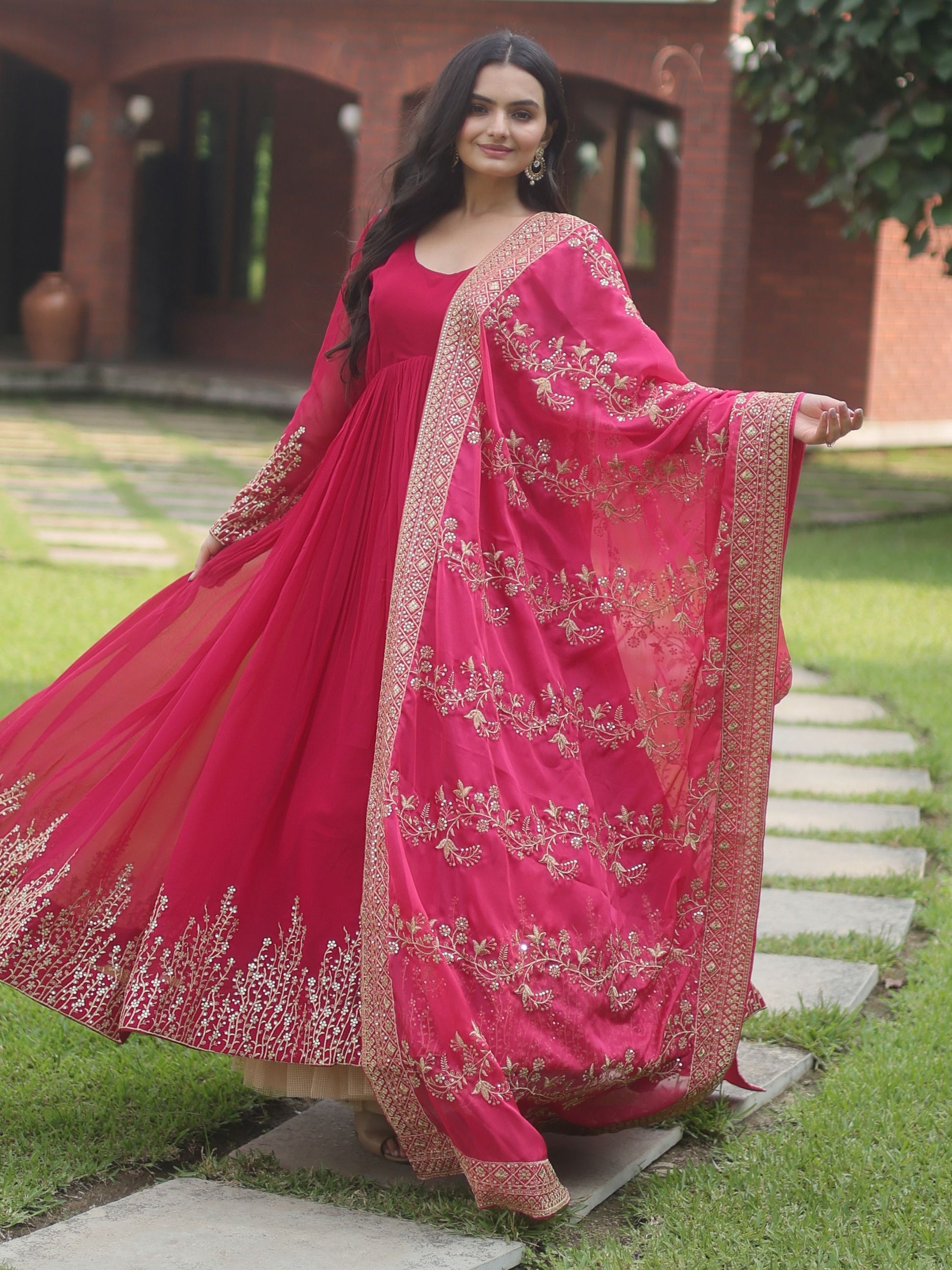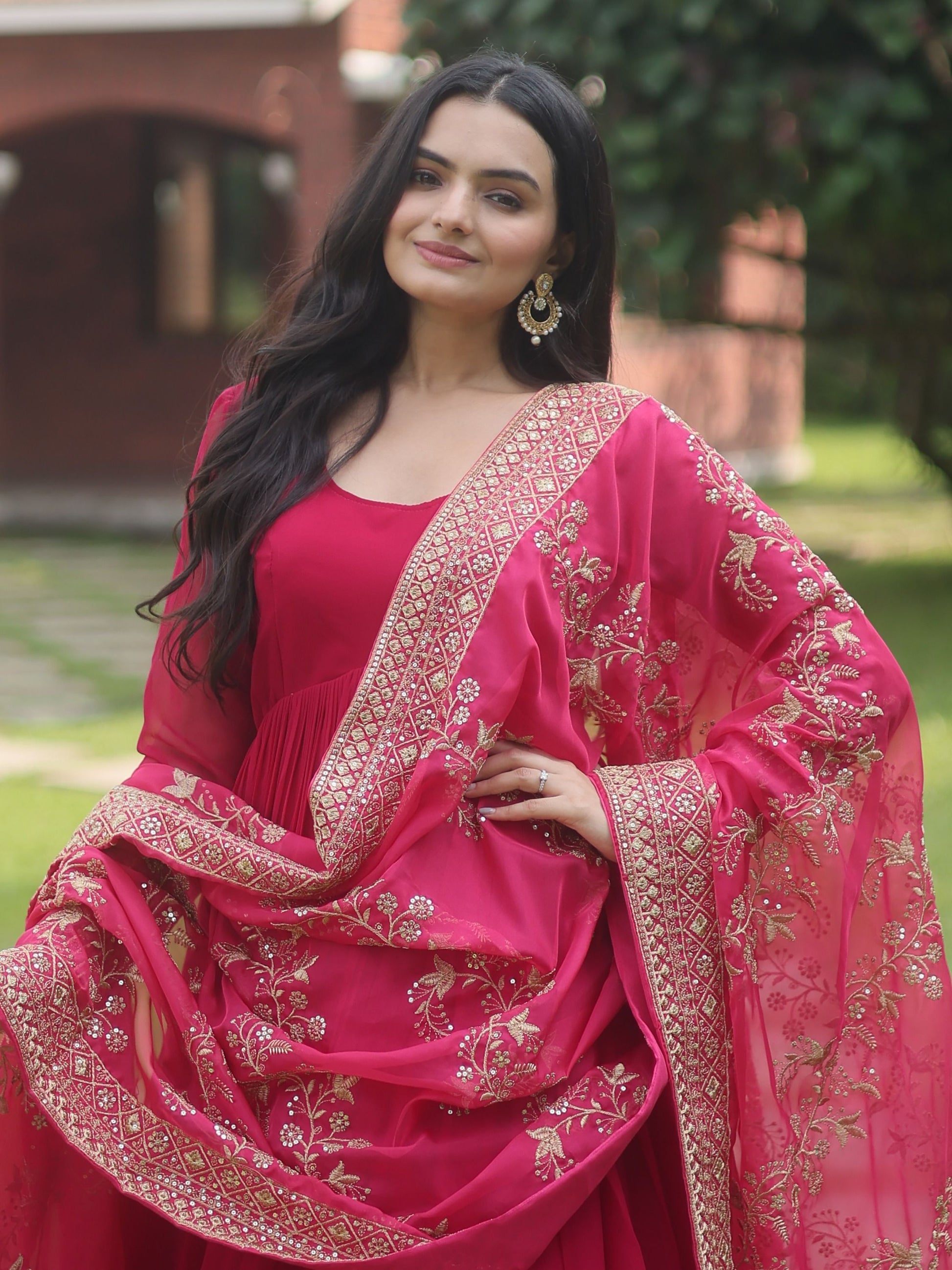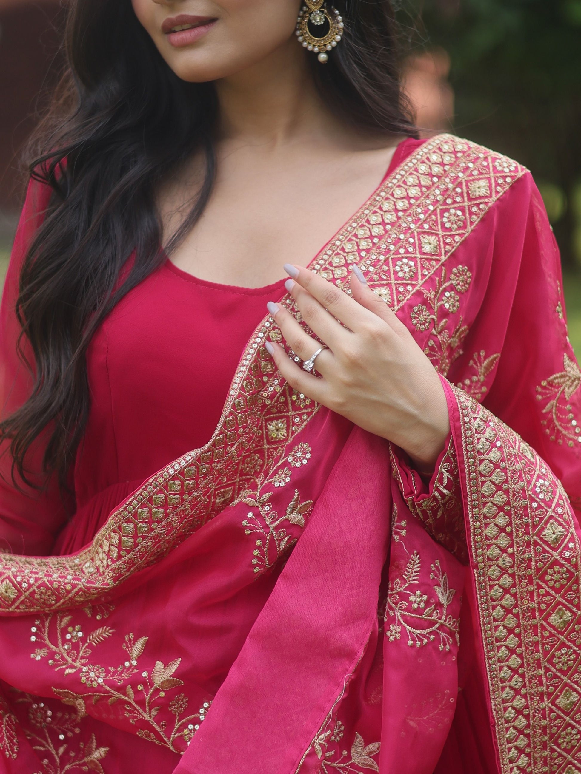 Product Name -Stunning Pink Embroidered Anarkali Suit with Heavy Dupatta – Festive & Wedding Wear