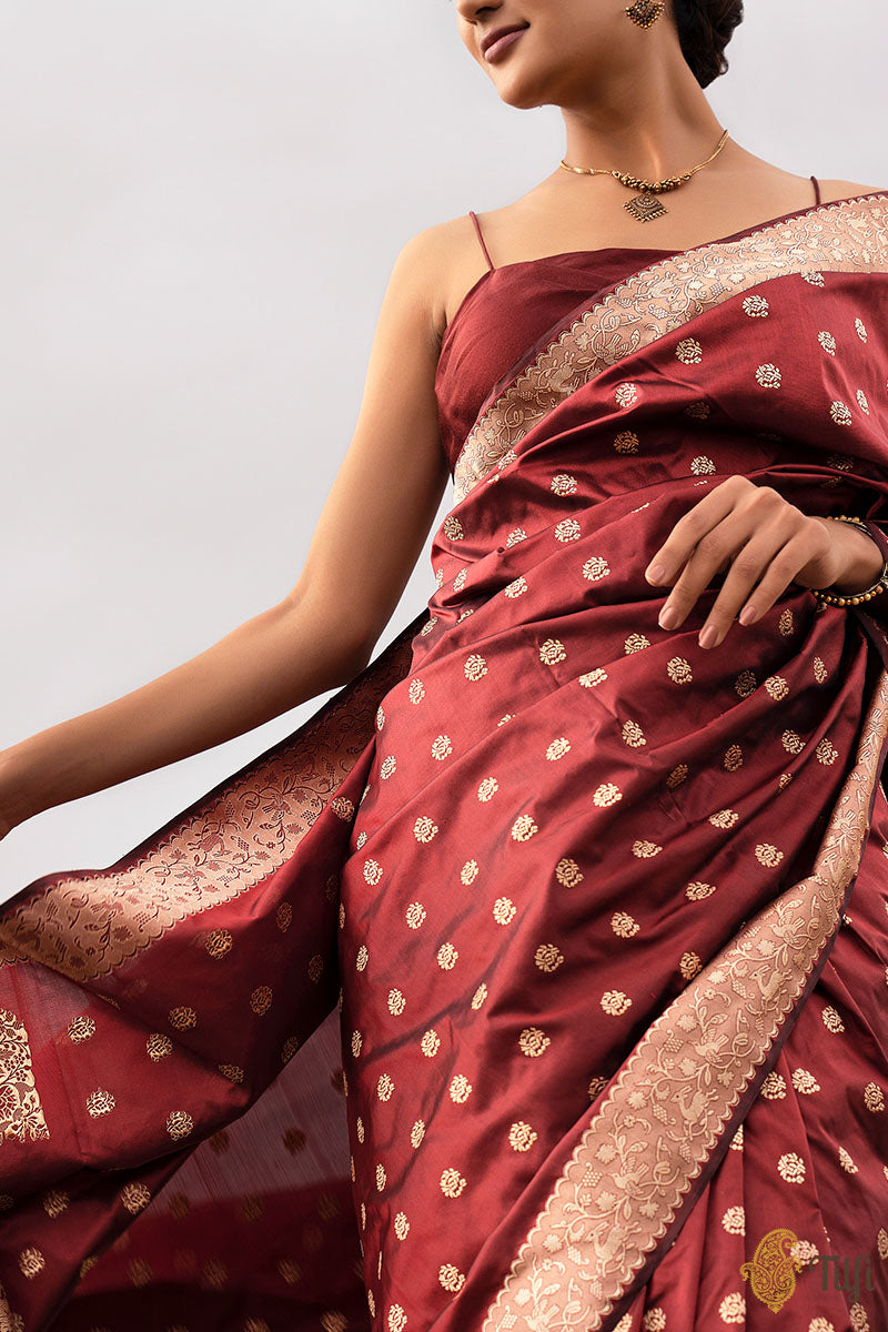 Deep Maroon Georgette Saree with Golden Embroidery