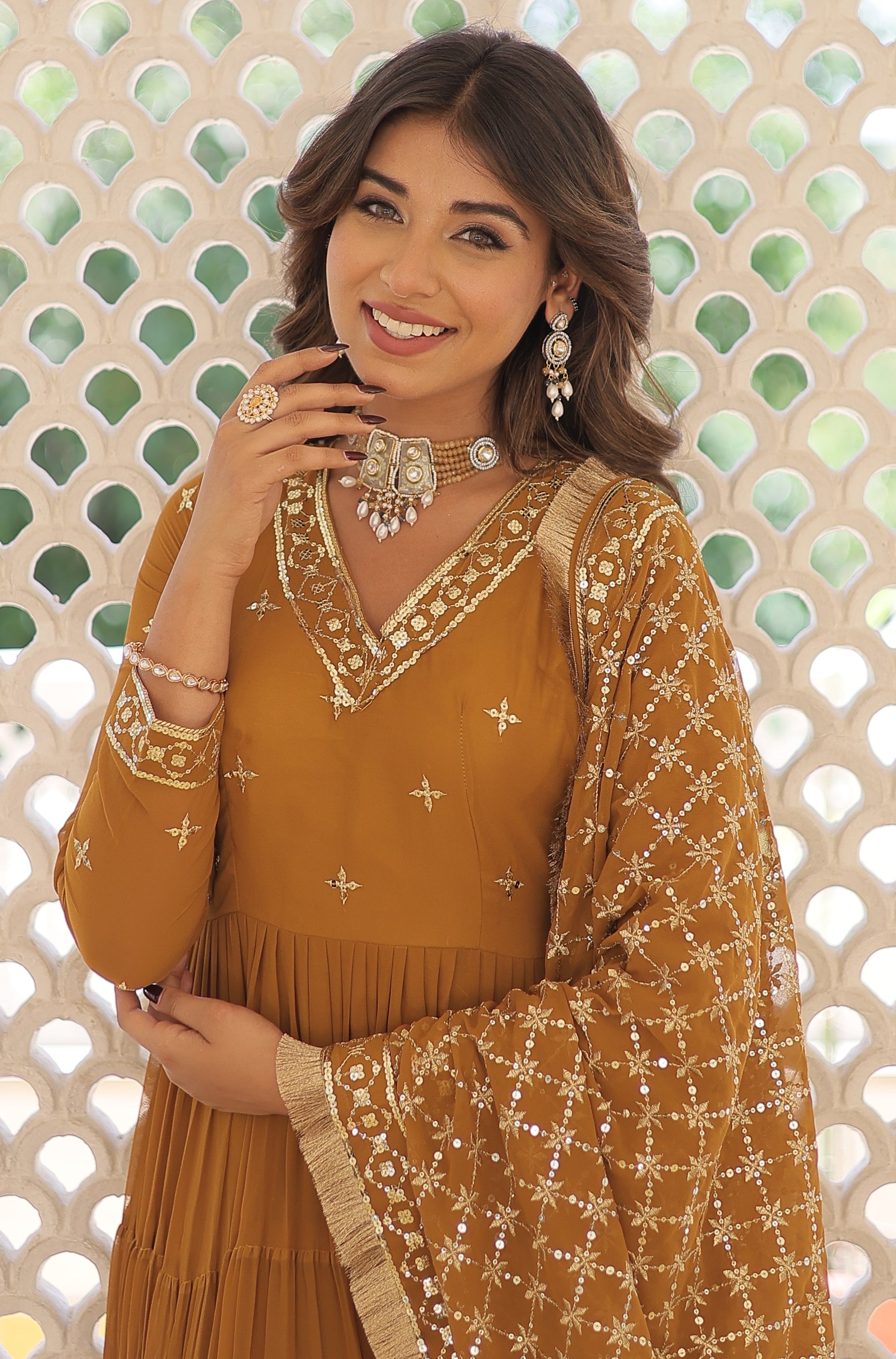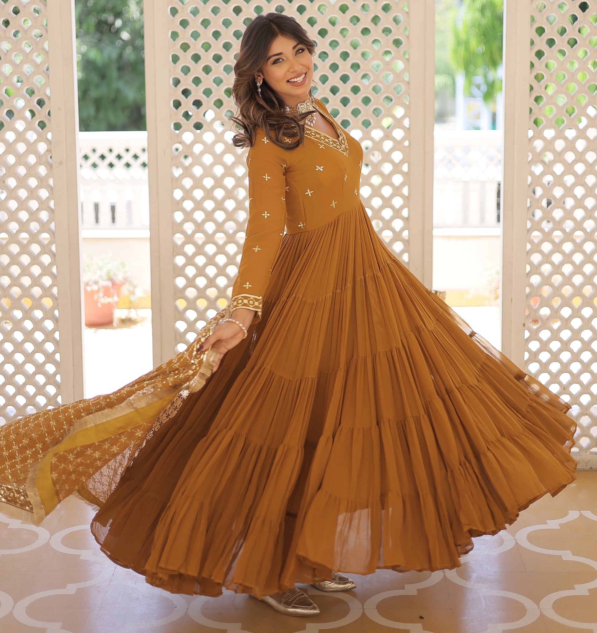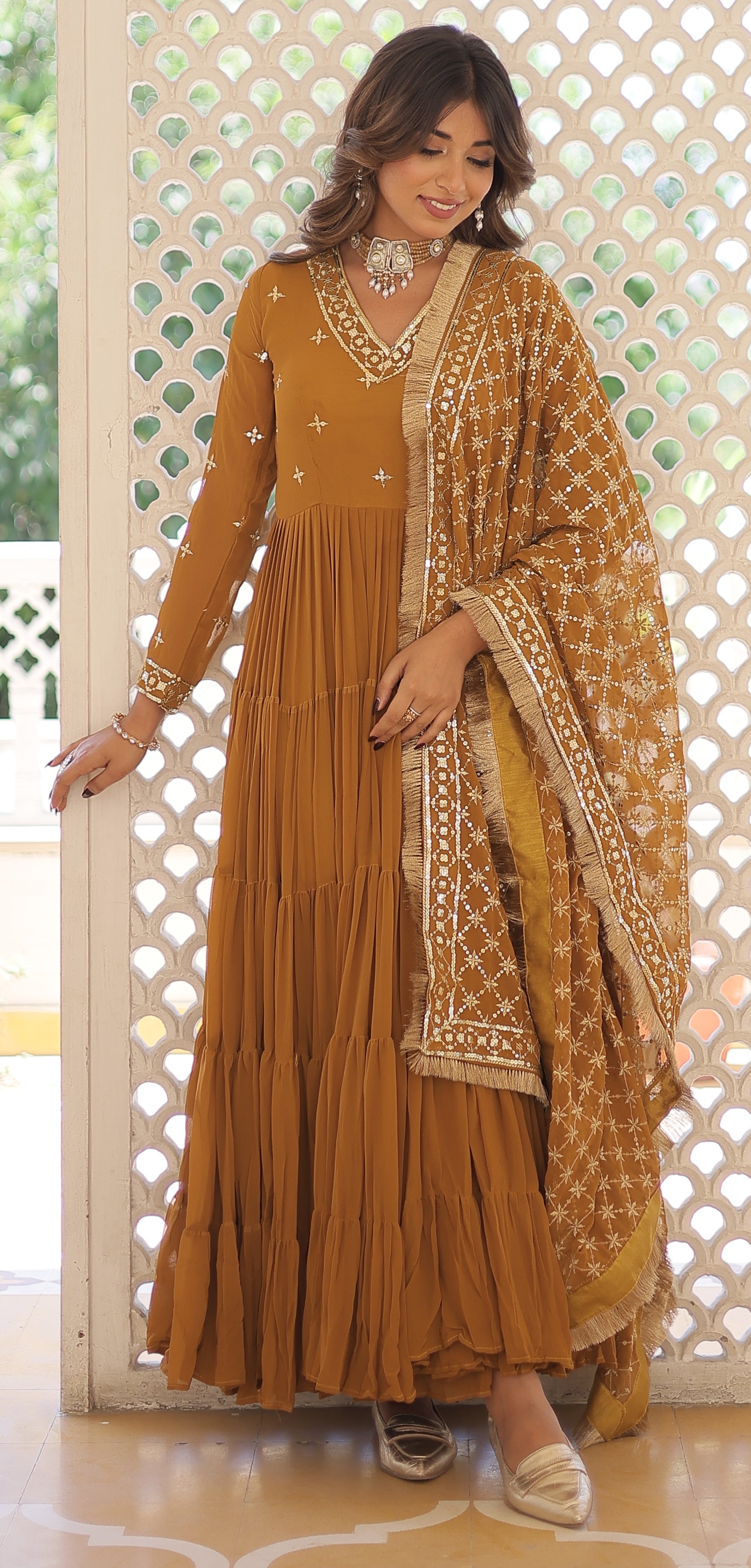 Ready To Wear Georgette Yellow Gown Set